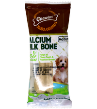 Gnawlers Calcium Milk Bone helps to maintain strong bones and muscles, also improves digestion, and cleans teeth. It has a unique combination of special active essence with the goodness of natural ingredients. It is enriched with Protein which helps to prevent plaque and tartar. It will be a chewy treat for your dog and it cannot resist the mouthwatering taste..