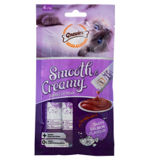 Gnawlers Smooth Creamy Treat with Salmon is a delicious wet treat for your adult cat of any breed. It contains salmon which is full of flavors and contains highly digestible protein for strong muscles. It contains green tea extract which improves the digestive system. Gnawlers Smooth Creamy treat with Salmon contains taurine which improves eyesight. It contains fatty acids like Omega 6 which improves the skin and fur coat. It is gluten and preservativefree..