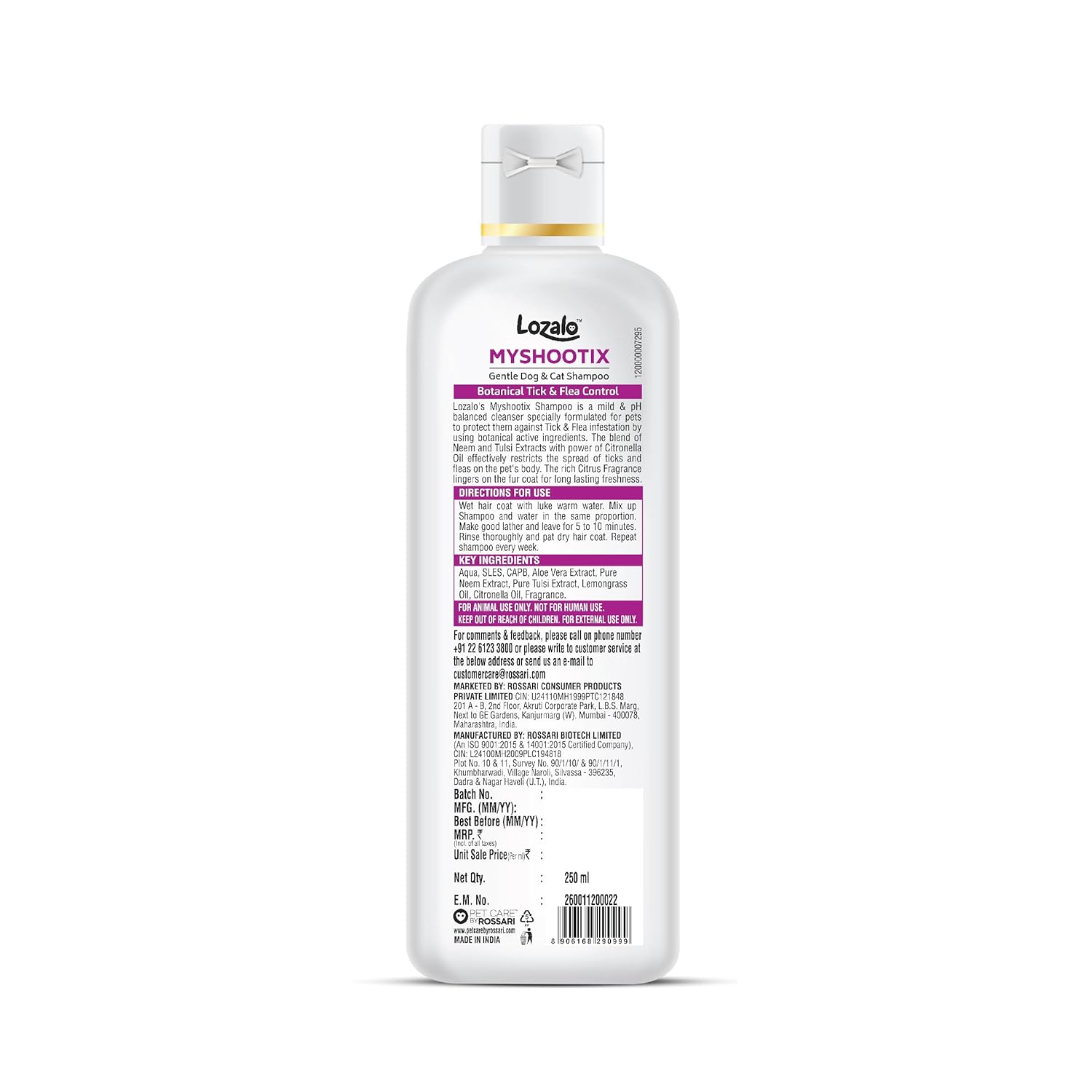 Lozalo Botanical My Shootix Anti Tick Pet Shampoo, Tick and Flea Control Shampoo for Dogs & Cats of All Breeds, with Neem, Citronella & Tulsi Extract, Paraben Free