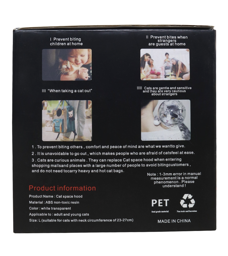 • 【Widely applicable】 The cat space cover adopts a transparent spherical design, which can prevent pets from licking wounds after surgery or biting nursing staff during surgery. And it can also effectively protect the cat's head to prevent the cat from accidentally biting people.