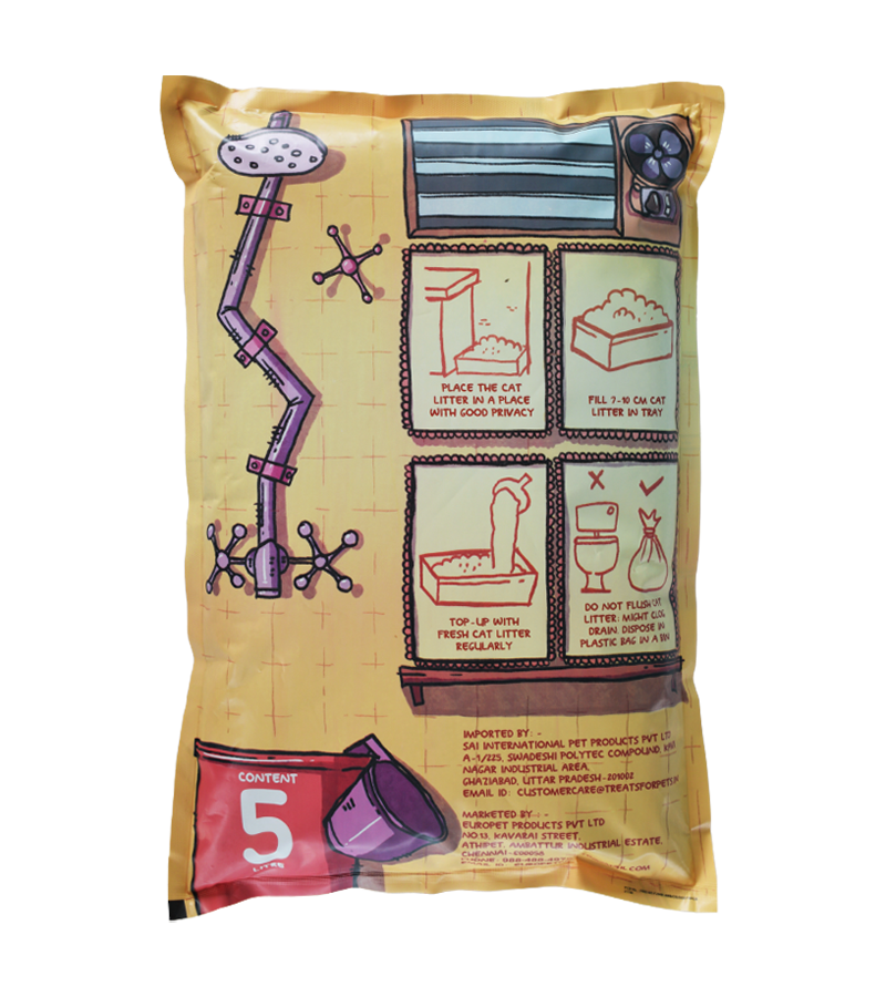 Pet Pattern Cat litter is a super absorbent mineral product that is an entirely natural, environmentally safe product, unbleached, and contains no harmful substances and fibers. It has a high liquid absorbent formula that absorbs faster and clumps quickly this makes messfree easy cleanup. This Scoopable Cat Litter has Superior antiodour properties, it contains fresh fragrant heavyduty odor eliminators unique formula that eliminates obnoxious odor including ammonia, and an instant absorbent formula that traps odor inside the clumps that control odor completely. Less amount of litter usage lasts for a long period of time and the fine texture of natural bentonite clay granules gives your beloved cat a naturally soft feel. After use, it can be reemployed as a composting aid or for soil improvement with excellent results..