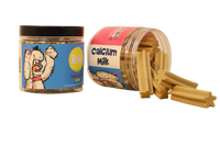 RANCH CALCIUM MILK provides instant freshness by keeping the dog’s breath fresh and clean teeth.  RANCH CALCIUM MILK removes tartar build-up and improves the health of teeth by keeping the plaque at bay Calcium-rich Milk in Ranch Treat has a high concentration of Protein, Calcium, Potassium, Vitamins, Zinc, and other nutrients. Not recommended for dogs less than 6 months of age. RANCH Treat is a TREAT and for any reason should not be given as a meal. Treat ranch treat to your dog under your direct supervision, and ensure they chew the treat properly.
