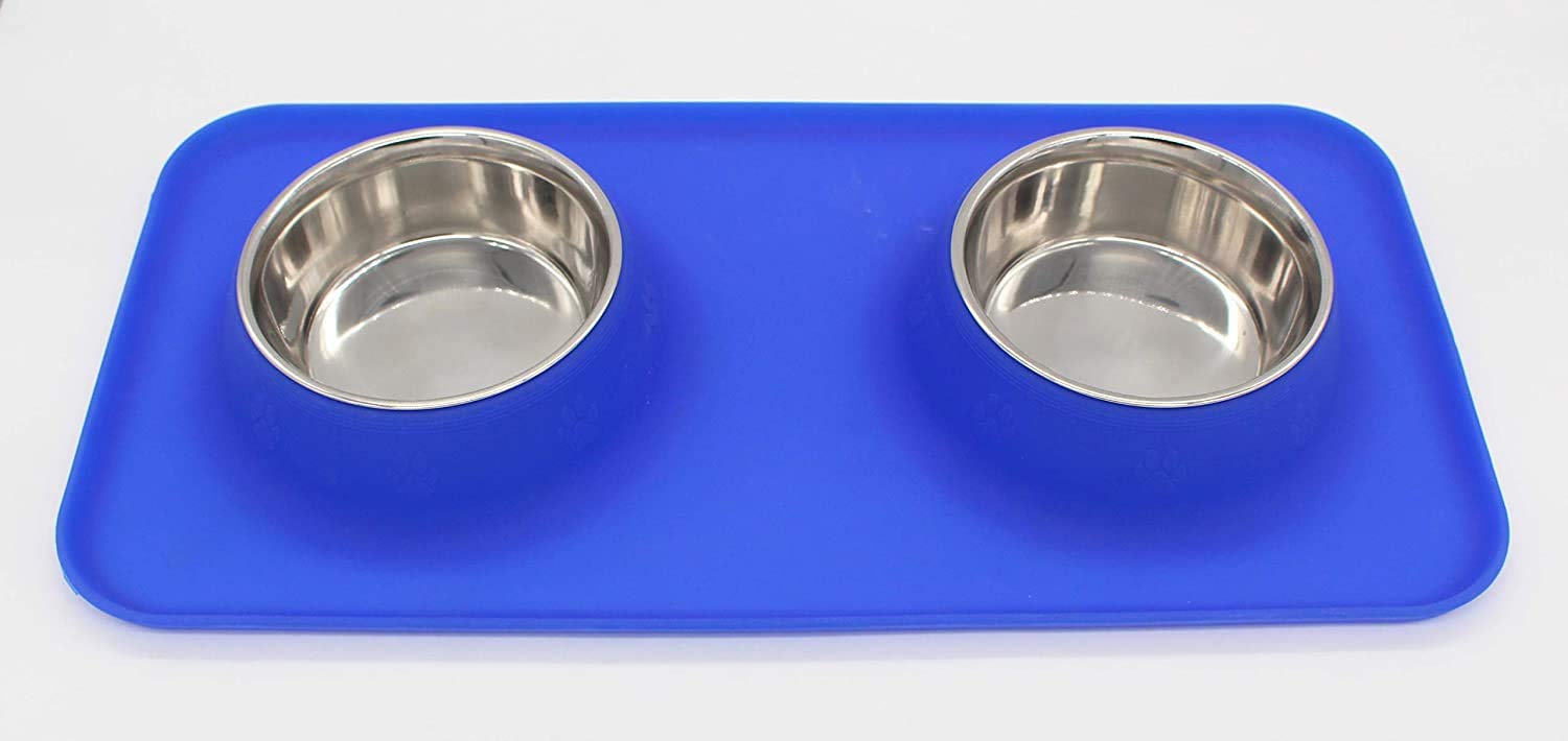 • No-Spill Silicone Mat- The raised silicone mat edge can catch most spills and splashes and keep your floor clean, and also save you much pet food and time