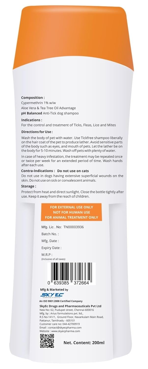 Sky Ec TickFree Anti-Tick Dog Shampoo, 200ml