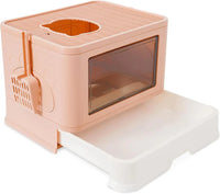 Smarty Pet Cubical Cat Litter Box with Rim & Scooper - Premium Enclosed Design is a Modern cabinet-style enclosed litter box with transparent front panel and decorative paw prints. Complete 50x35x40cm system includes matching rim tray and scoop for maximum privacy with visual monitoring.